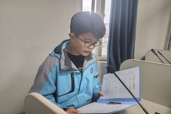 图为初二(3)班赵正杰进行学雷锋主题演讲